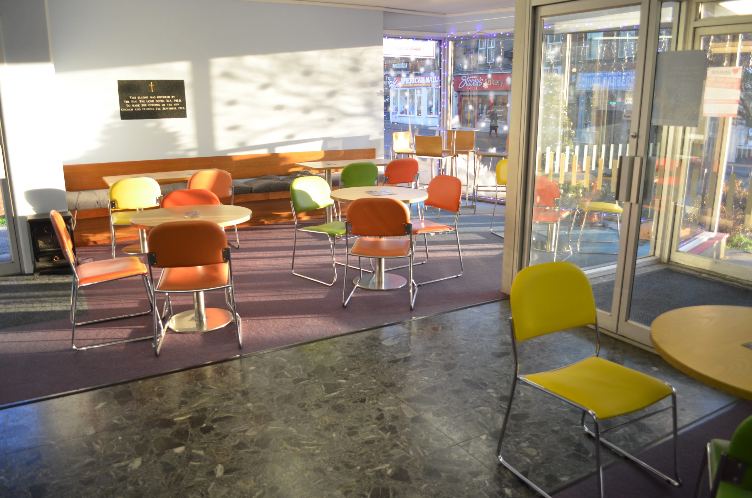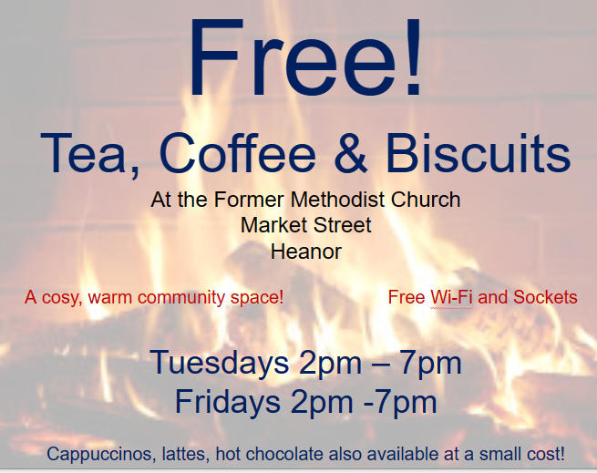 Welcoming the community for warmth and free tea, coffee and biscuits.